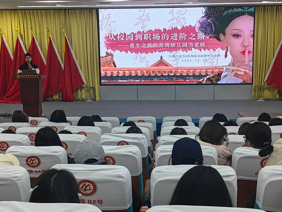 为深化产教融合、推进校企合作,助力学前教育专业学生明确学习目标、科学规划职业发展、提升就业竞争力。12月28日,教育与文化传媒学院学前教育专业在招生就业中心二楼会议室成功举办“幼教梦想·职海启航”就业沙龙活动。本次活动特邀眉山市东坡区齐通幼儿园副园长赵栩艺、学院2024届优秀毕业生李章淋担任主讲嘉宾。2024级、2025级及五年制2022级学前教育专业学生参与本次活动。