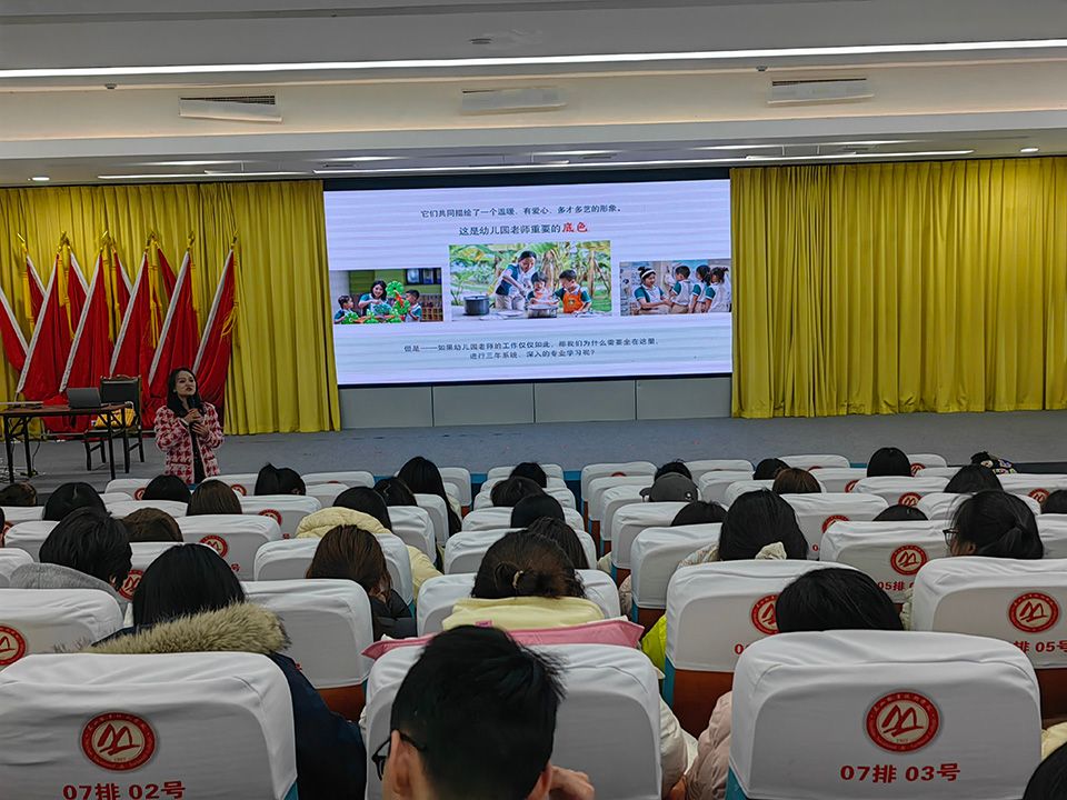 赵栩艺以《幼儿园需要怎样的“准教师”》为题,从职业素养与专业能力两个维度,系统剖析了当前学前教育行业对人才的核心要求。她结合一线教学与管理中的真实案例,详细阐述了幼儿教师应具备的爱心、耐心、责任感等职业品质,以及活动设计、课堂组织、家园沟通等专业实践能力。赵园长还就学生实习准备、求职面试等环节提供了具体建议,帮助学生提前了解岗位需求,增强就业适应力。