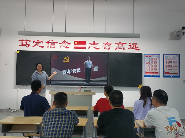 研学活动中,曾华首先强调了开展“青年党员说”研讨学习活动的意义,指出其重要示范作用,不但是对青年党员进行的一次深刻思想政治教育,也助力提升老党员的思想觉悟和工作能力。随后,全体党员观看了《青年党员说—我们这一代》微党课视频。支部青年党员陈思雨代表发表了观看感想,她从“我们这一代要成为什么样的青年党员”这个中心话题谈起,深刻剖析了自己在教育教学工作和党的创新理论学习中的进步之处以及不足之处,表达了在工作和学习中“奉献教育热情,争做优秀党员”的决心和意志。活动最后,与会党员纷纷结合自己在学习贯彻习近平新时代中国特色社会主义思想中的感悟,围绕“学习新思想,建功新时代”主题,展开了热烈讨论。