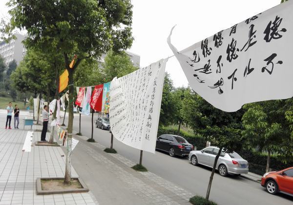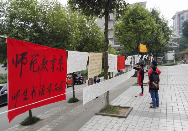 为贯彻落实党的教育方针,推进素质教育,展示学院师生风采,2015年10月12日,师范教育系结合学生技能训练,在学院食堂外开展了书画作品展。本次书画作品展共收到五十余幅书画作品,经过评审组认真细致的评选,挑选出了三十余幅优秀的师生书画作品参加展览。每一幅作品都倾注了师范教育系师生的心血和努力,书法作品有的苍劲有力,有的行云流水;绘画作品有的栩栩如生,有的笔精墨妙,都展现了师范教育系师生的书画功底和风采,也是开学以来师范教育系开展教学技能训练活动的结果。