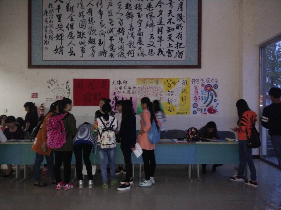 为丰富师范教育系学生的二课活动,拓展学生的视野,提高学生的素养,锻炼学生的能力,2015年10月8日----13日,师范教育系团总支开展了社团招新活动。晚自习期间,团总支的成员“兵分三路”,在大一各班教室进行了团总支的招新宣传,并于9日、10日的中午和下午,在学院第一教学楼大厅内,设立了招新点。通过各位志愿人员的积极宣传和辛勤劳动,让师范教育系的新同学们了解了师范教育系团总支五个部门的性质以及常规工作。