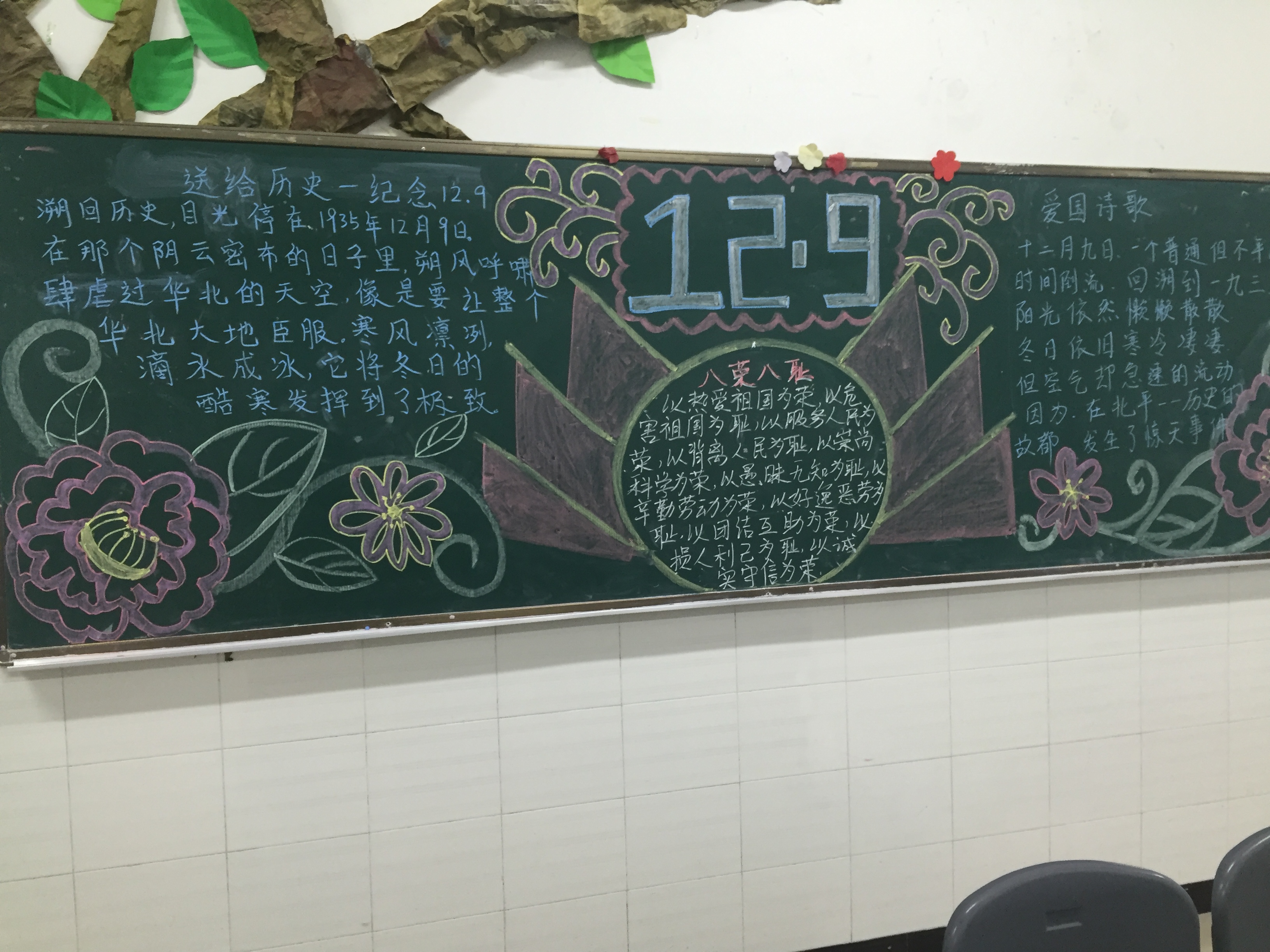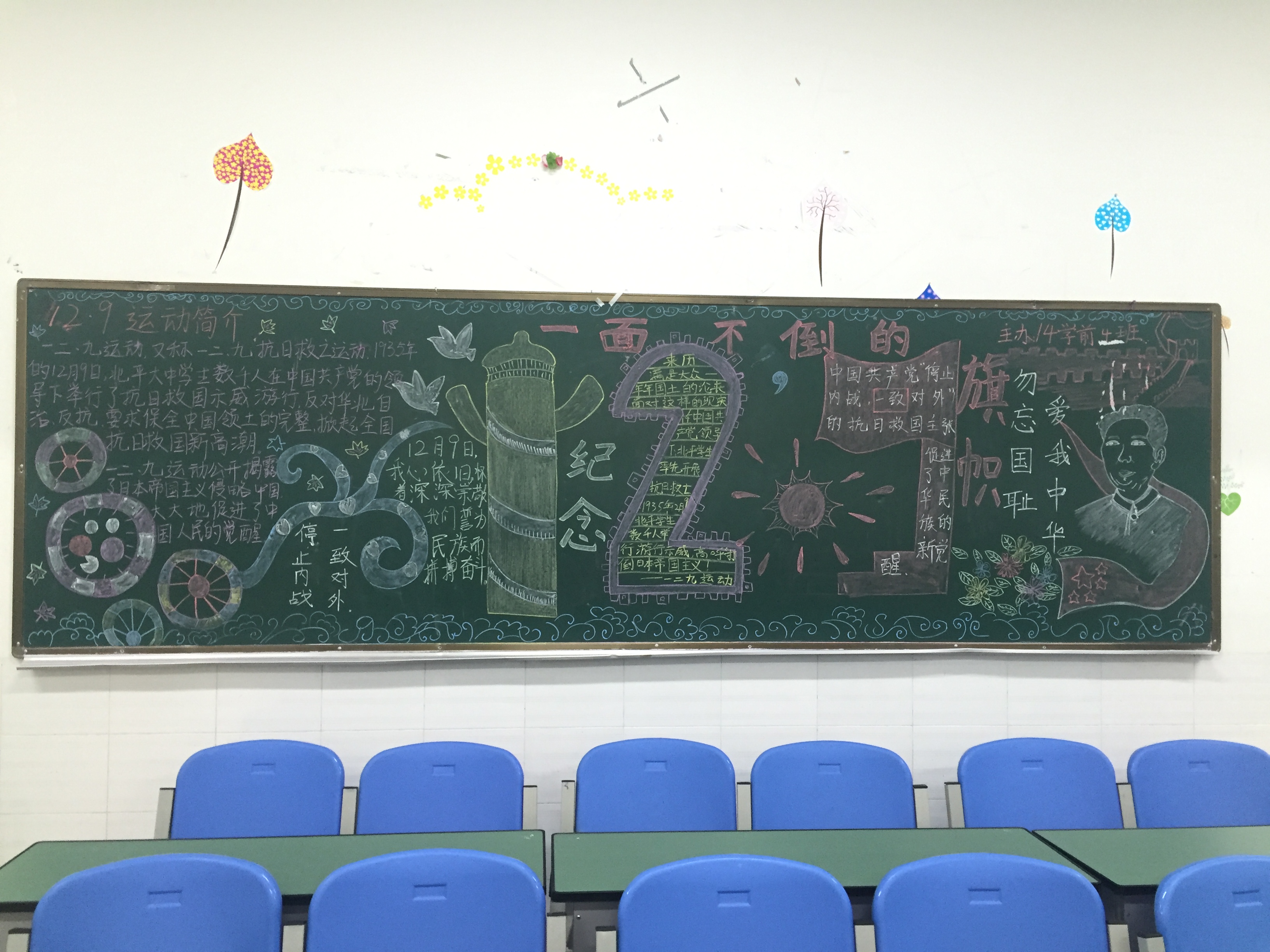 为纪念“12·9”爱国运动80周年,营造全系学生积极向上的学习风气,提高爱国热情,师范教育系在2015年12月7日—9日,在全系开展了以纪念“12·9”为主题的黑板报比赛。