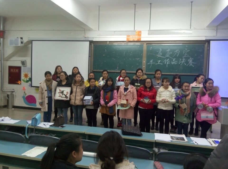 为了培养同学们的创新精神,丰富同学们的课余生活,提高同学们的动手实践能力,2015年12月15日,师范教育系学生分会举办了“变废为宝”手工作品大赛活动。