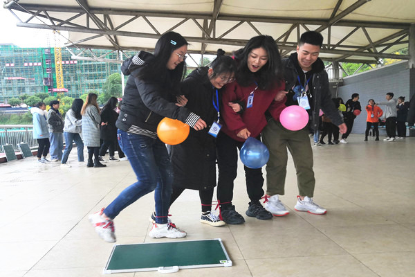 活动中,为加强各部门干事的进一步认识了解,同学们随机分组开展活动。本次活动共设“同舟共济”“两人三足”“老鼠偷粮”“一元五角”四个项目,在项目实施过程中,参与者积极配合、群策群力、抱团行动,运用集体智慧制定完美实施方案,努力攻克难题,按规则要求顺利完成任务。活动现场充满了团队的欢声笑语、加油鼓劲。活动后,同学们纷纷表示,轻松有趣的“体验式”拓展活动,增进了彼此信任,强化了团队的向心力和执行力。