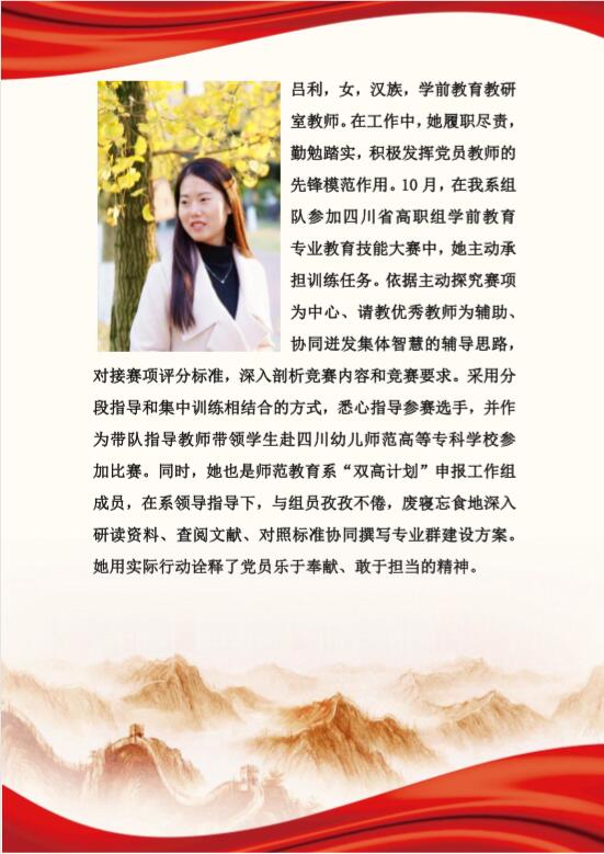 师范教育系党总支2020年10月“党员之星”