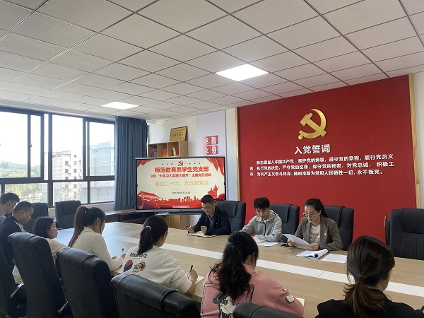 9月28日,学生党支部于党员活动室4303开展“喜迎二十大,永远跟党走”主题党日活动,会议由支部书记陈微主持。
