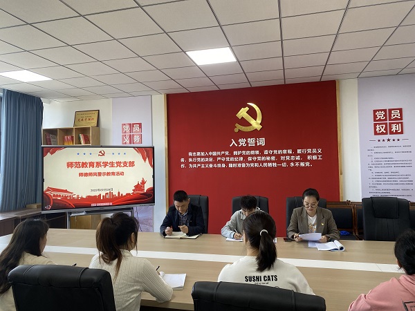 9月28日,师范教育系学生党支部在4303党员活动室开展师德师风警示教育活动。