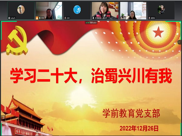 12月26日,师范教育系学前教育党支部通过线上方式开展12月“学习二十大·治蜀兴川有我”主题党日活动,会议由党支部书记程雪主持。