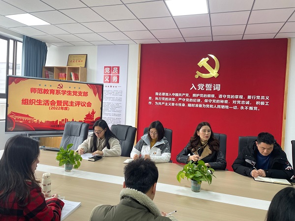 2月22日,师范教育系学生党支部在4308党员活动室召开2022年度组织生活会和民主评议会,师范教育系党总支副书记、主任张雪艳作为列席领导参加会议。会议由支部书记陈微主持,学生党支部全体党员参加会议。