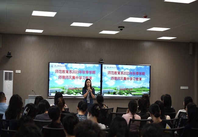 9月13日下午,师范教育系在4303智慧教室组织全体教职工开展师德师风集中学习教育。