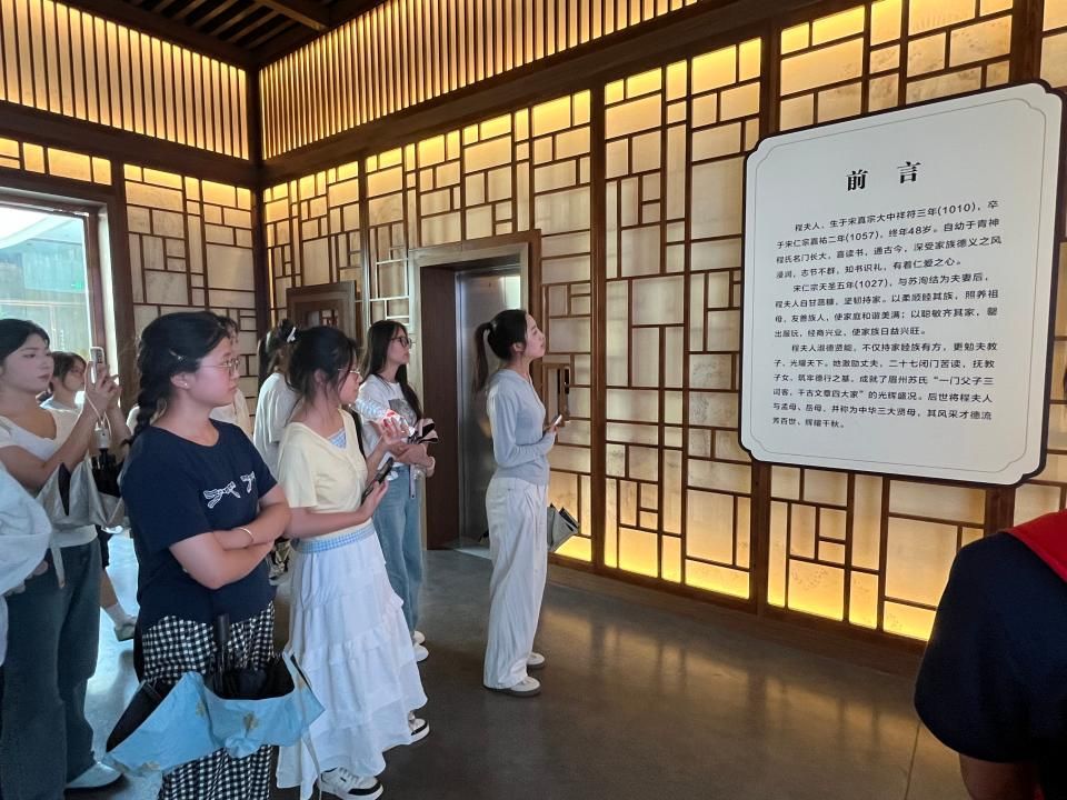活动中,大家怀着崇敬的心情,认真观看苏母祠内的文化展板、历史图片和陈列实物,了解苏母程夫人相夫教子、勤俭持家、乐善好施的感人故事,瞻仰与苏母家风相关的文献史料和场景复原展品,共同感悟程夫人“重视教育、清正廉洁、爱国爱家”的家风内涵,以及其对苏轼、苏辙兄弟成长成才的深远影响。
