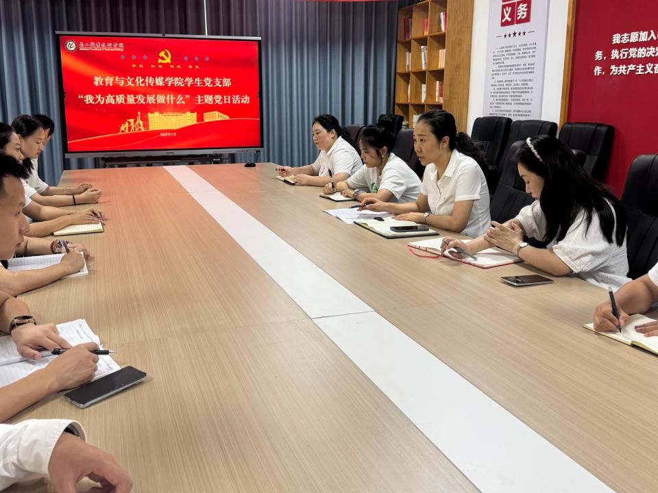 为深入学习贯彻党的二十届三中全会精神,积极响应学校党委关于“我为高质量发展做什么”主题党日活动的号召,7月15日,教育与文化传媒学院学生党支部围绕“聚力赋能促发展 一融双高建新功”主题,组织全体学生支部党员开展主题党日活动。