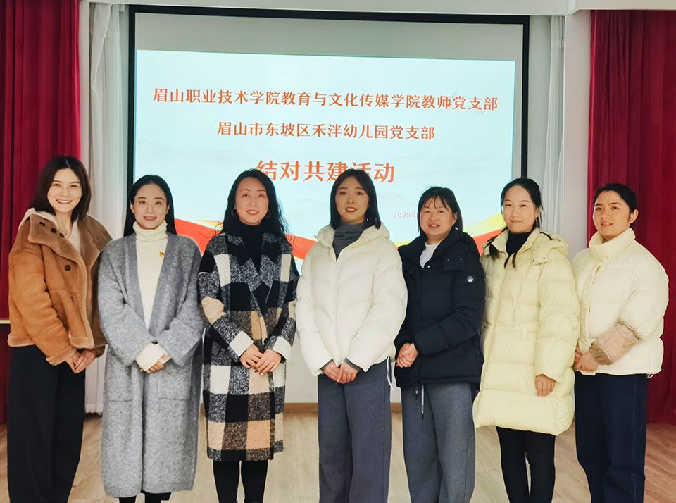 11月26日,教育与文化传媒学院教师党支部与眉山市东坡区禾泮幼儿园党支部在禾泮幼儿园党建活动室正式签署党建结对共建协议,并举行首场共建交流活动。双方以党建为纽带,围绕学前教育实践需求与高校专业资源对接开展深度合作,共同探索党建与业务融合新路径。