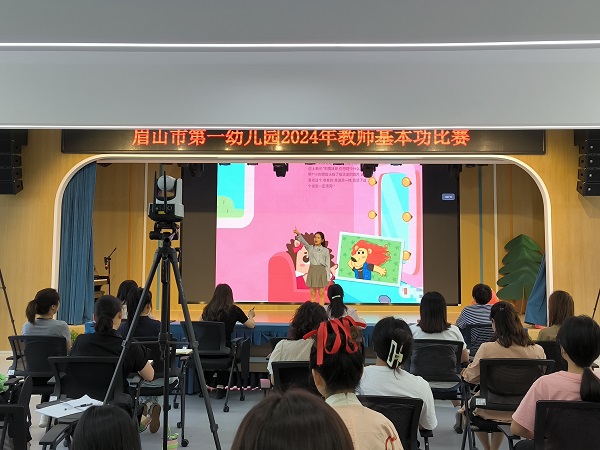 5月13日下午,师范教育系2022级学前教育专业见习学生在眉山第一幼儿园二楼音乐厅观摩了眉山市第一幼儿园2024年教师基本功比赛初赛,幼儿园副园长刘瑶主持本次比赛。