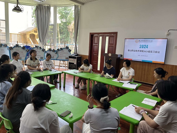 5月24日,2023级学前教育专业10名见习学生在东坡区同升幼儿园参加见习总结会,会议由主班教师钟燕群主持。