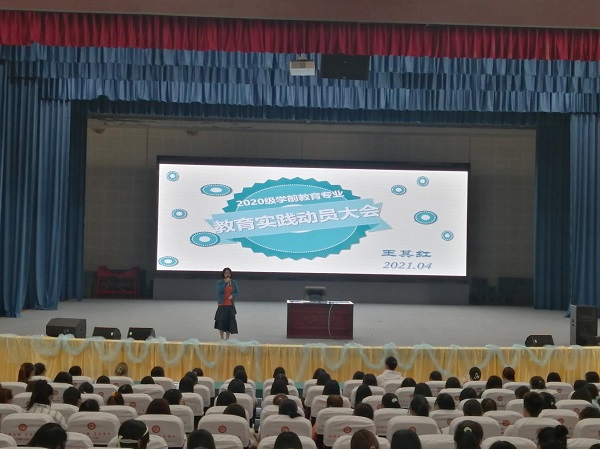 4月23日,师范教育系在艺术中心召开2020级学前教育专业教育实践动员大会。会议由学前教育专业教研室主任王其红主持。教务秘书肖文婷、2020级学前教育专业学生参会。