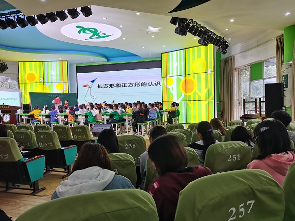 首先东坡小学伍老师向我们展示了一堂精彩的数学课堂《长方形和正方形的认识》,伍老师通过设疑,让学生在提出假设、验证假设、得出结论的过程中构建知识、形成能力,随后,各年级教师代表就伍老师的课堂进行了点评,我们的实习生也在点评环节积极发言,踊跃发表自己的观点。