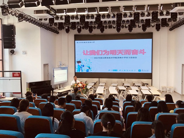 为全面实施小学教育专业人才培养方案,加强实践教学环节,让学生全面了解小学教育教学工作,加深他们对专业的理解和热爱。师范教育系从4月19日开始,陆续安排小教专业同学实习。19级20位同学,20级25位同学在苏洵小学实习。4月30日上午9点半,在苏洵小学洵美讲堂召开了实习工作总结会!
