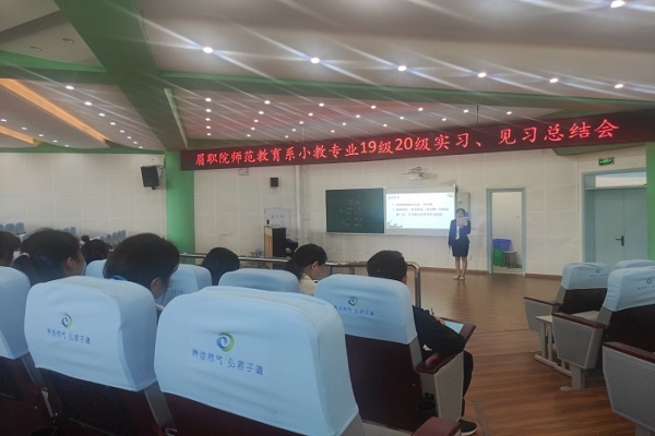 2021年4月30日,东湖小学在阶梯教室开展了眉职院师范教育系小学教育专业实习总结会,本次总结会对19级和20级实习生进行点评指导,东湖小学领导,实习指导老师,我校带队老师以及全体实习生参加了总结会。