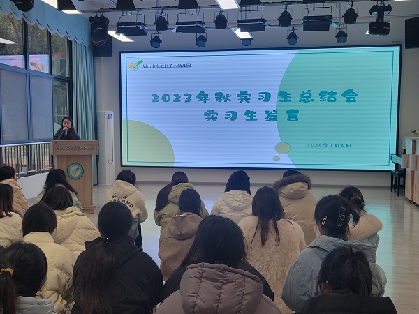 1月4日,我校学前教育专业教育实践基地东坡区第六幼儿园组织召开了2021级学生教育实习总结会,幼儿园主任冯庆婉,我系带队教师李梅、幼儿园全体指导教师及11名实习生参加会议。