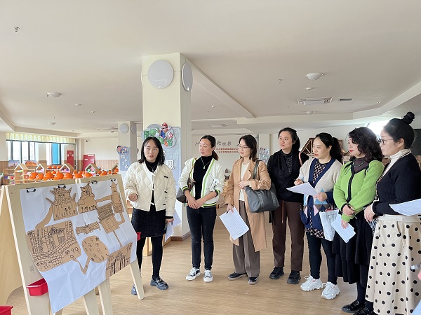 此次评比活动采用“评审观摩+现场讲解”的形式展开,各班幼儿教师详细解说环境创设思路和特点。我系美术老师们逐班观摩,认真聆听,从高校教师的角度对各班的环境创设进行评分,并给出了意见和建议。