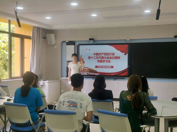 6月8日,文化艺术系学生党支部在7506组织集中学习中国共产党四川省第十二次代表大会会议精神。