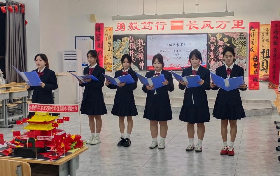 为进一步增强教育效果,部分班级还开展了抗战历史知识竞答、红色诗词朗诵、“青春告白祖国”短视频创作等互动活动。同学们在知识抢答中深化理解,在朗诵中抒发爱国情怀,在视频创作中展现青春理想,现场气氛热烈,教育效果显著。