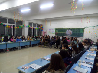 2016年12月25日晚上,15级汉语1、2班全体同学在二教教学楼2106教室举行了以“感恩”为主题的感恩教育主题班会。活动以主持人真实而感人的致词开始,点明班会“感恩”的主题。班会分为“感恩思考,了解感恩”“感恩视频学习”,“感恩父母电话连线”3个环节。