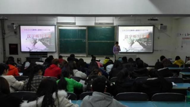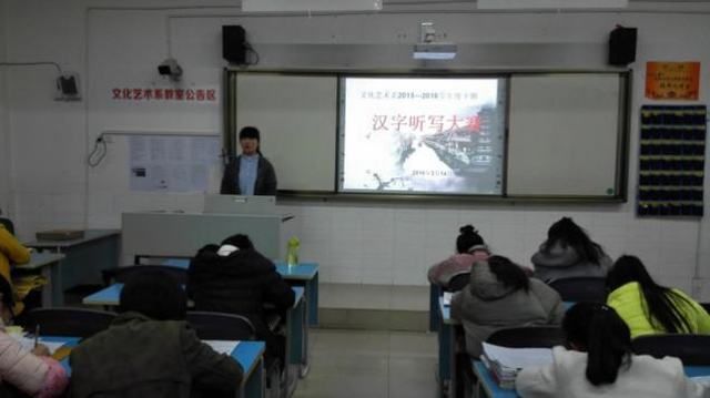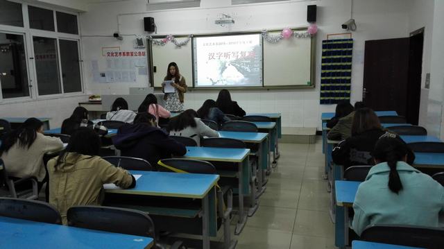 为了激发学生学习知识的兴趣和动力,选拔优秀的汉字听写选手参加院团委组织的2016年汉字听写比赛,文化艺术系举行了2015—2016学年度下期“汉字听写”大赛。本次大赛分为初赛和复赛两个环节,初赛以班级为单位,于3月14日进行,全系学生参赛;复赛由各班根据初赛成绩推荐的2名学生参加,于3月20日进行。参加复赛的同学经过认真努力的学习,比赛成绩都相当优异,15级英教1班黄雨璐和15级汉语1班白明艳正确率到达了99.3%,他们将代表文化艺术系参加院团委组织的汉字听写决赛。