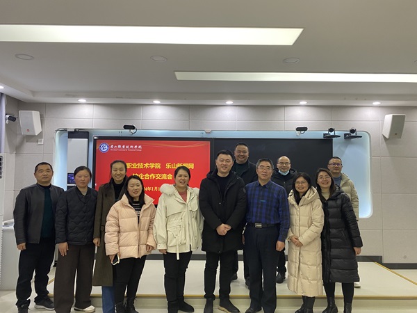 1月19日,乐山新闻网张斯炜副总编(主持工作)率各部门负责人一行五人到我校就人才培养与岗位需求、2024年双方合作内容及目标开展校企深度合作研讨。学校党委委员、工会主席彭书君、文化艺术系主任余莲君、党总支副书记廖颖以及中文专业教师参与研讨会。
