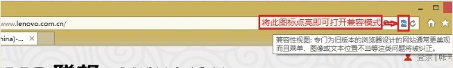 在地址栏右侧有个兼容性视图的图片,直接点亮即可打开兼容模式。