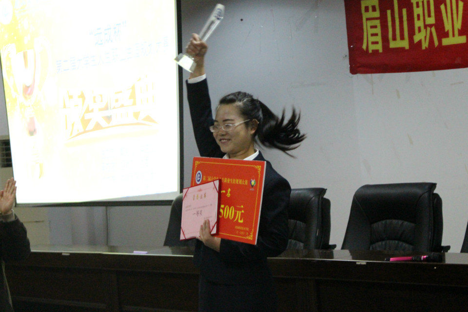 2016年12月15日下午4点由眉山职业技术学院教务处、学生处主办,招办和院团委承办的第二届大学生职业生涯规划大赛决赛暨颁奖典礼在学术报告厅进行,文化艺术系学生经过认真备赛、激烈角逐,最终16级汉语2班向洋获得大赛一等奖、16级英语2班杜孟秋获得大赛二等奖的优异成绩。