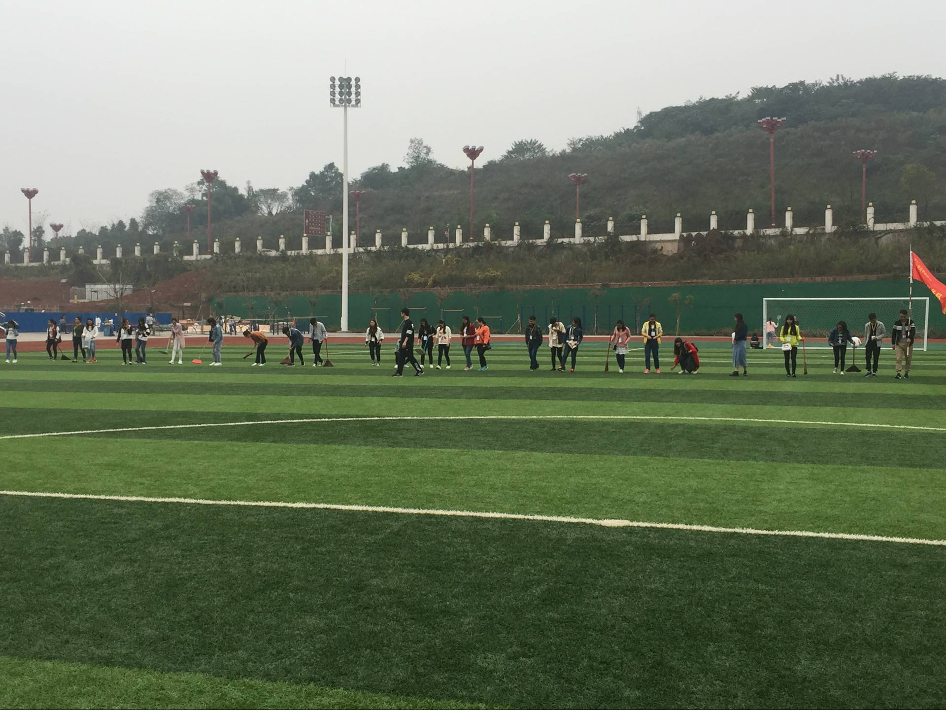 师范教育系学生科长李兴龙亲自到现场,对本次清扫活动作了分工,并提出了要求。随后,带领志愿者们分组对田径场,看台,跑道等各个地方的垃圾进行清扫。活动中,同学们精神饱满,团结互助,不怕苦,不怕累,经过七十余分钟的共同努力,将运动场中的果皮、纸屑、瓜子壳、烟头等垃圾清扫的干干净净,使运动场更加整洁、美观。