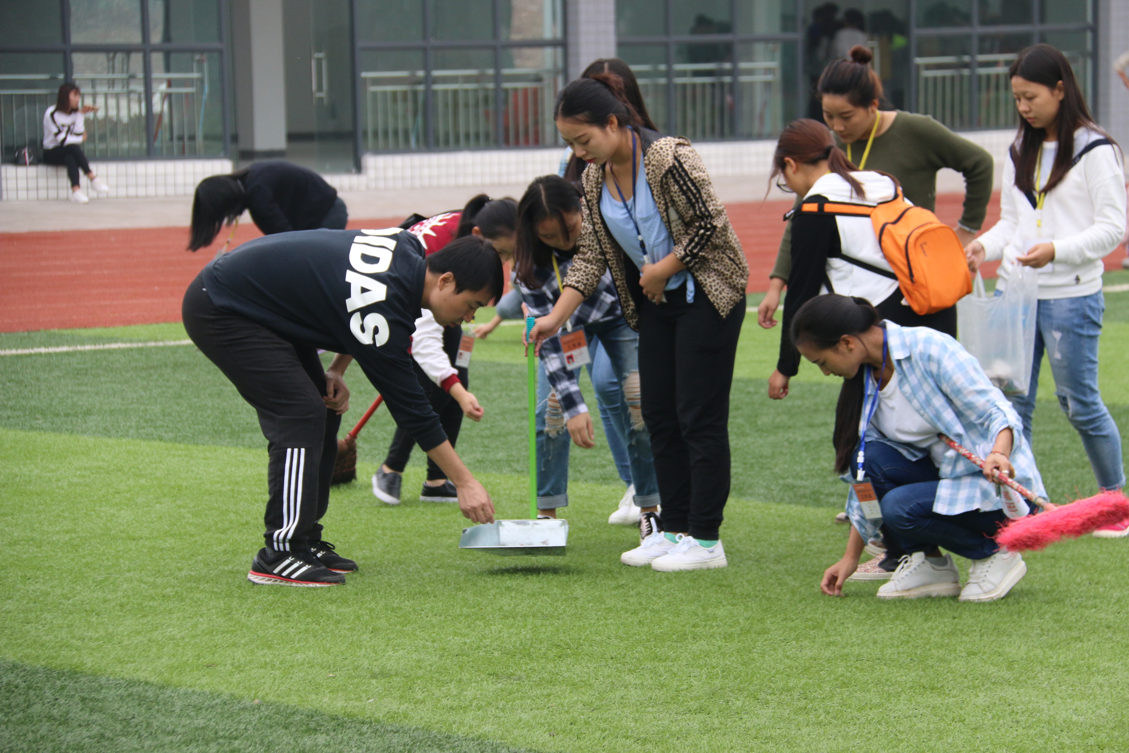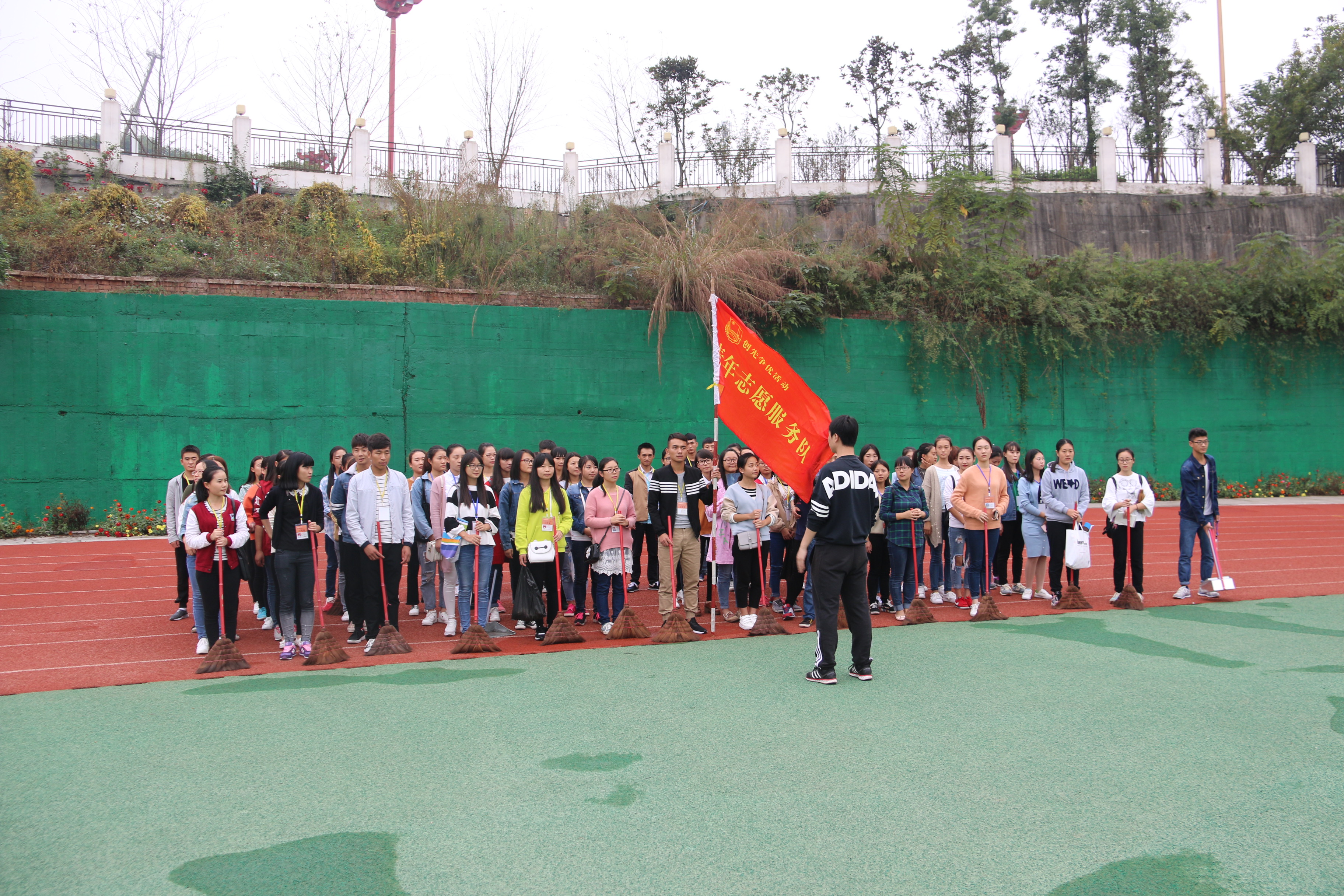 师范教育系志愿服务队,将利用课余时间对学院运动场开展不文明现象的劝导和监督,并不定期、不定时组织志愿者对运动场开展卫生清扫活动。