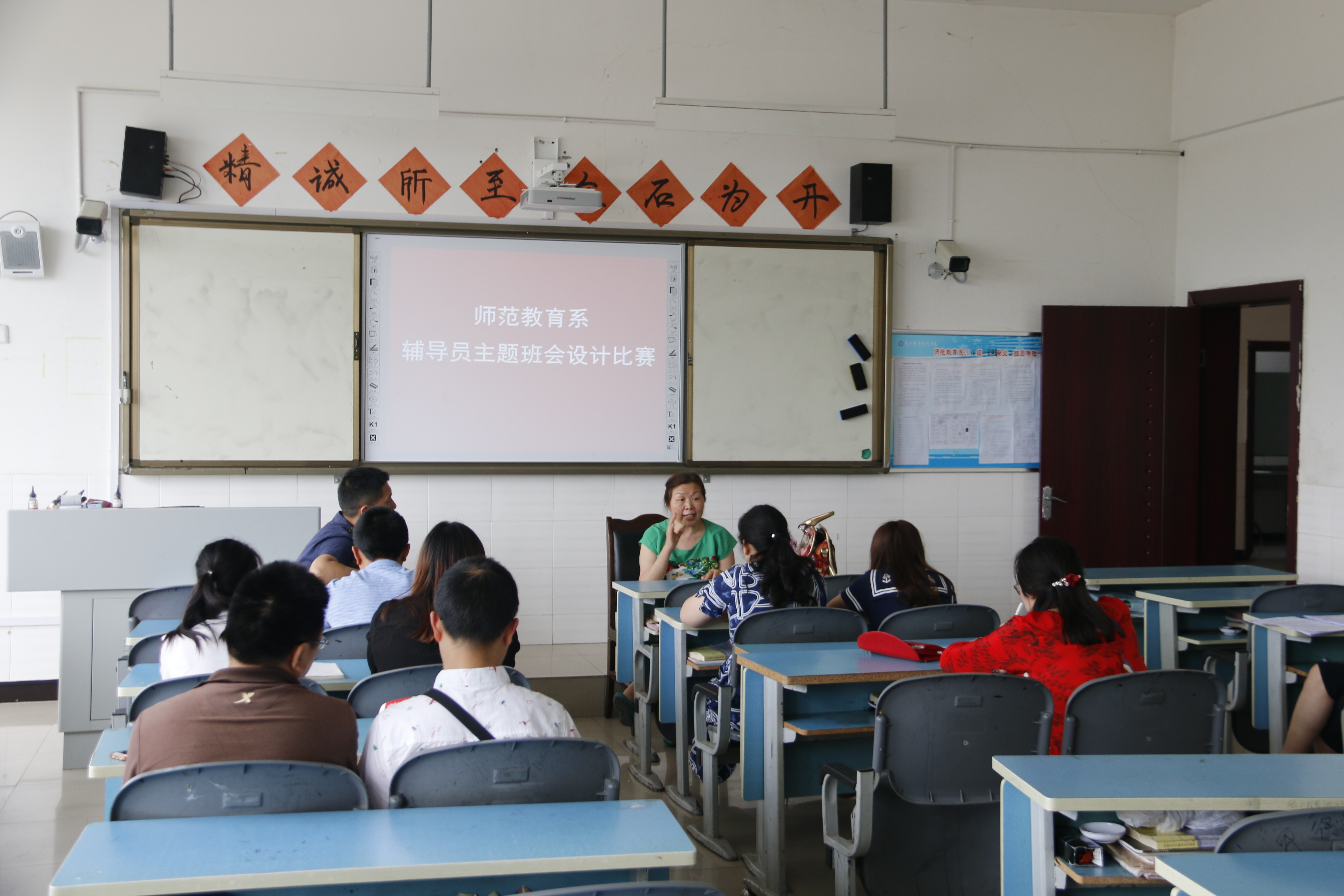 为切实提升辅导员职业能力,达到共同进步的目标,师范教育系在5月下旬进行了主题班会设计比赛,并于2017年6月1日中午,在1208教室进行了现场点评。活动邀请了廖敏副教授、系副主任张雪艳、系党总支书记丁盛作为评委,辅导员全程参与。
