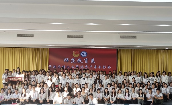 仪式上,陈思雨进行了聘书颁发并作了要求讲话,对学生干部们的辛勤付出给予肯定,通过总结、谋划、传承三个关键词对同学们提出了希望和要求,希望学生干部们能做好过去一学年工作的反思与总结,要在总结中发现问题、找准不足;要善于谋事想事,提前做好暑期社会实践、秋季学期迎新、招新等各项工作的策划和安排,制定好工作计划;要做好传承,发挥表率作用,铭记学生干部的使命,传承责任和担当,发扬师范教育系的优良传统。