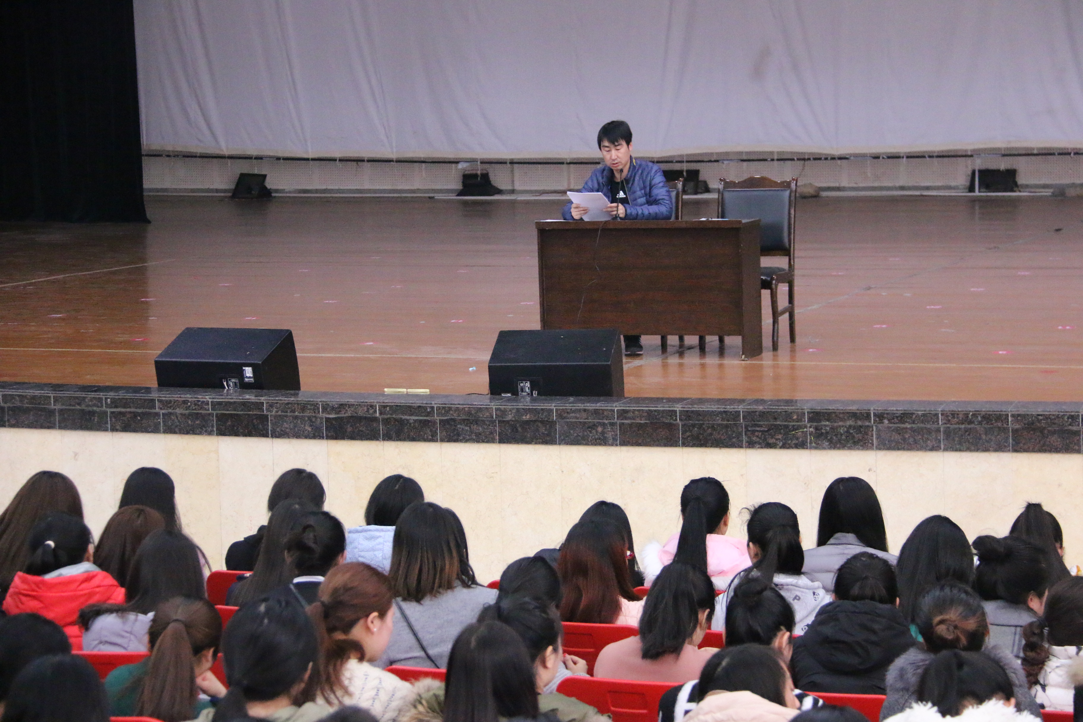 为统一我系学生的思想认识,严肃班风班级,使学习行为习惯快速走上正轨,2016年2月29日下午和晚上,师范教育系在学院艺术中心召开了新学期第一次学生大会,系学生科科长李兴龙主持了会议,系党总支书记兼副主任丁盛、全体辅导员和全体学生参加了此次大会。
