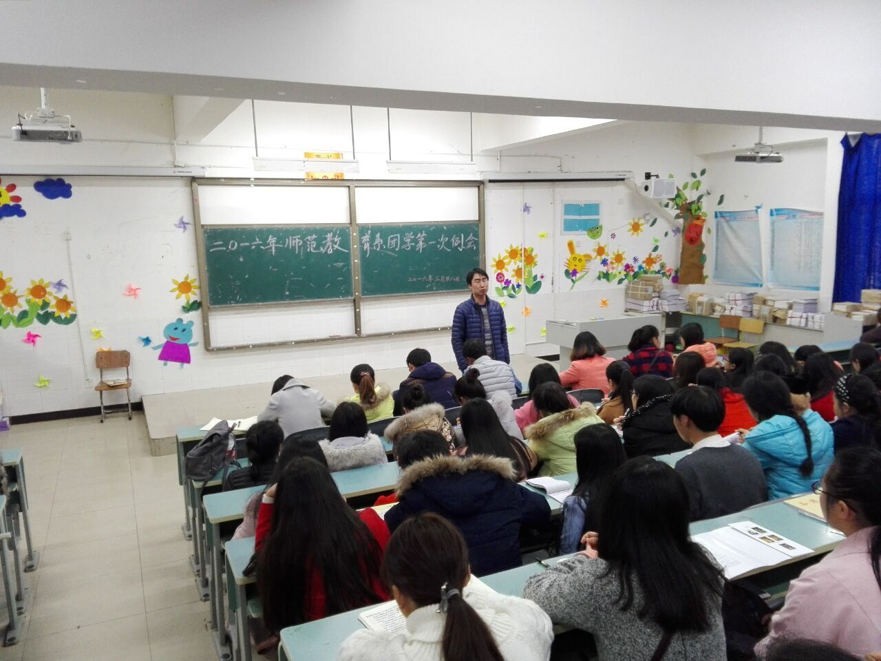 为让我系的团学干部调整好心态,尽快适应到新学期的工作和学习中来,了解本学期的主要工作安排,2016年2月28日18时30分,师范教育系团总支、学生分会全体干部以及各班班长、团支书在1102教室召开了本学期的第一次团学例会,系学生科科长李兴龙主持了会议。