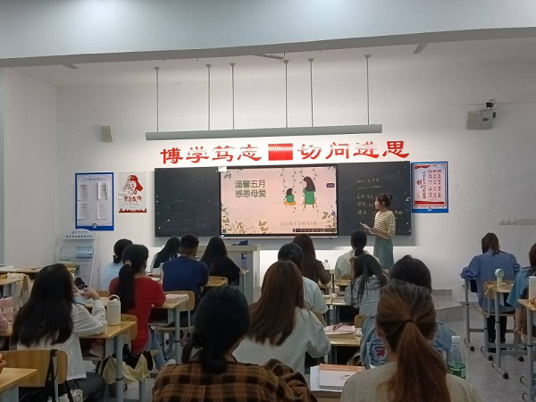 2024年5月12日晚,师范教育系2022级小学教育1班在4602开展“温馨五月,感恩母爱”主题班会,活动由班长毛东琴主持。