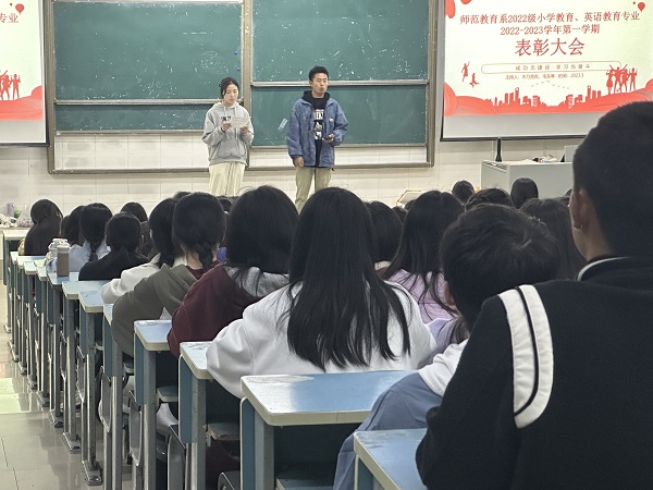 3月22日,2022级小学教育、英语教育专业在1102教室召开2022年秋季学期表彰大会。