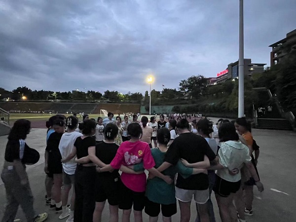 6月1日,师范教育系五年制2019级学前教育3班在操场上开展“携手共创,快乐起航”团建活动。