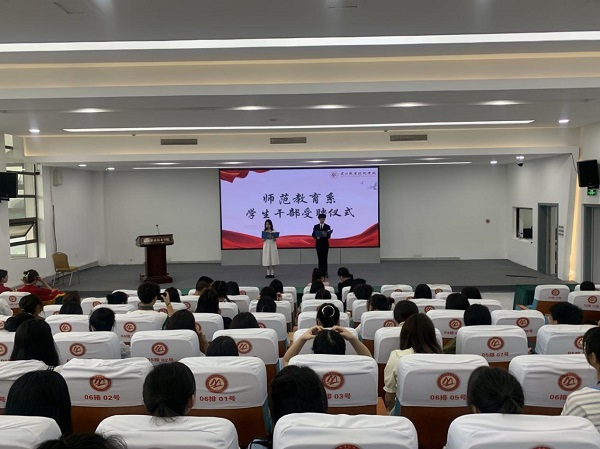 6月11日晚,师范教育系在招生就业中心二楼办公厅举行系团总支学生分会干部受聘仪式。