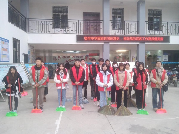 1月26日,师范教育系2023级学前教育2班学生李婷参加凉山州会东县东升社区清洁志愿服务活动。