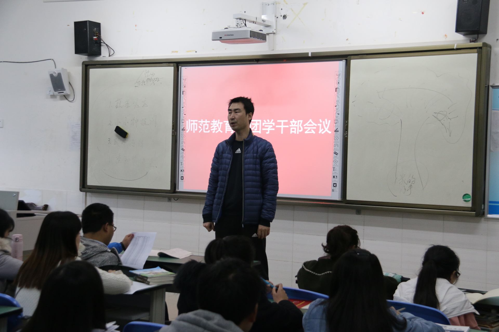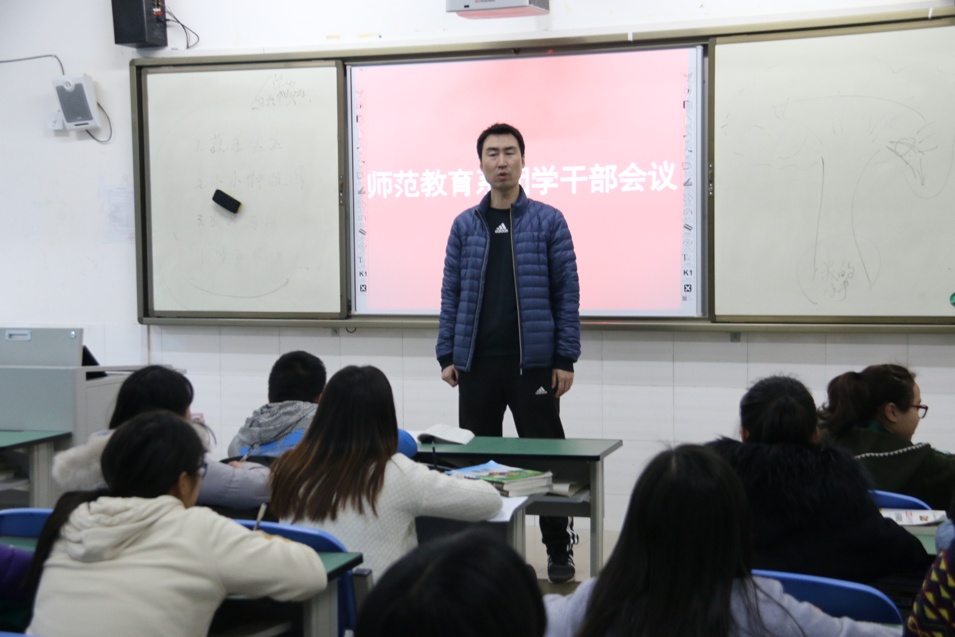 2017年3月22日下午,师范教育系在1208教室召开学生干部会议。会议由李兴龙主持,全体学生干部参加了会议。