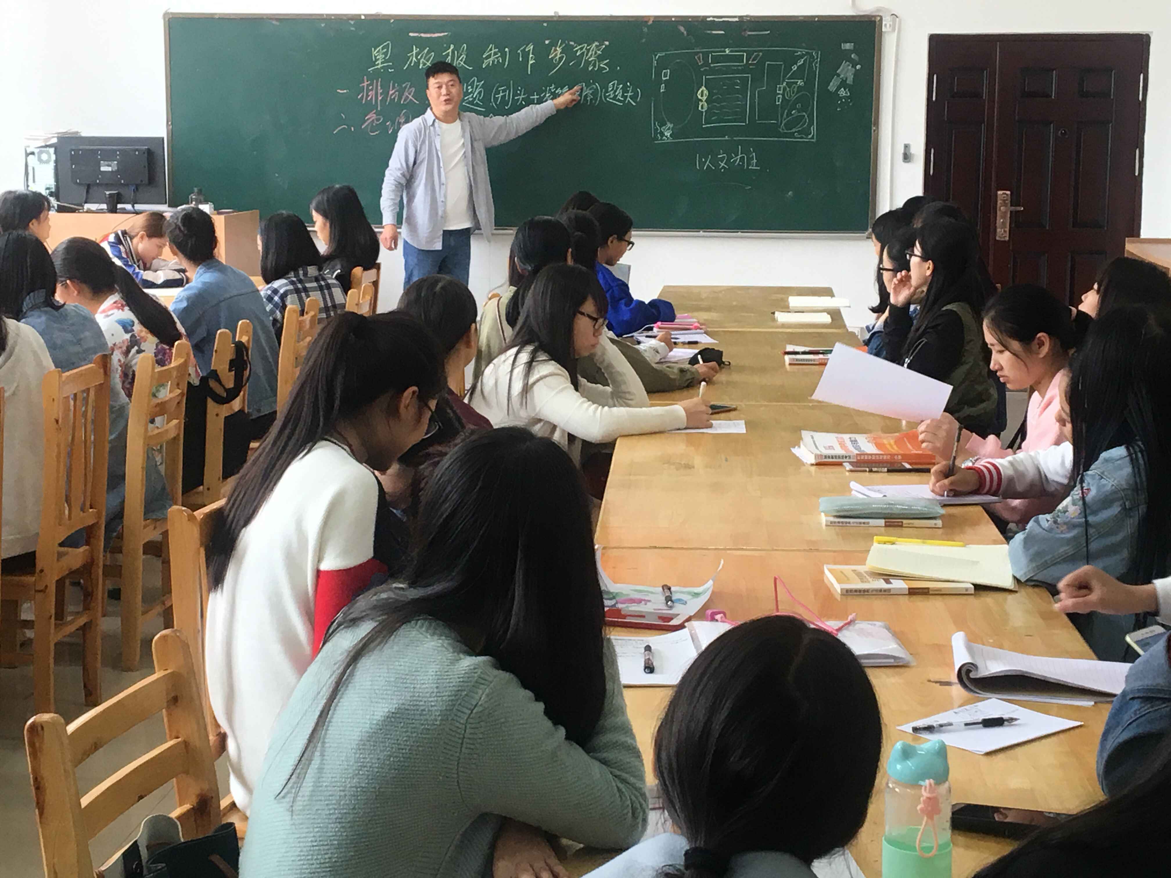为进一步提高我系各班黑板报的质量,师范教育系于10月13日中午邀请到了美术教师熊正华对各班黑板报负责人进行了培训。各班团支书、宣传委员参加本次培训。