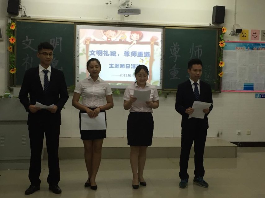为更好地弘扬中华民族传统文化,进一步引导学生树立“文明礼貌、尊师尊道”的良好意识,5月23--24日晚上,师范教育系各班在教室开展以“文明礼貌、尊师重道”为主题的团日活动。
