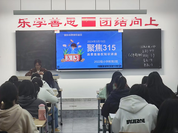 3月14日晚,师范教育系2022级小学教育2班在4606教室开展“3.15”消费者权益日普法宣传活动。