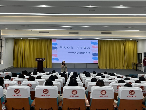 讲座中,王叶首先提出问题“过去一周,你经历过哪些情绪?”引发同学们思考,顺势引出“情绪”这一概念,并从如何使用情绪自评量表、如何从面部表情、姿态、语调等识别与评估情绪状态等方面进行了着重介绍。随后,王叶分别从“认知”和“行为”两个层面深入浅出地讲授了学会接纳情绪、建立合理信念、正确表达情绪等情绪调节的策略,并生动阐释了情绪ABC理论的应用。在王叶带领下,与会学生一起练习了“渐进性肌肉放松法”,调节自我状态,享受难得宁静,讲座在轻松的氛围中落下帷幕。