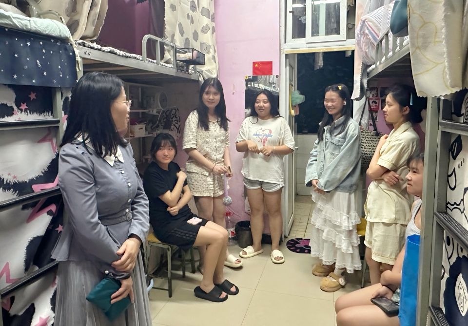 为全面了解学生思想动态和学习、生活状况,筑牢校园安全防线,营造良好的宿舍环境,5月11日晚,教育与文化传媒学院副院长王其红带领各专业辅导员深入学生宿舍,开展“一线访心声,携手筑防线”宿舍走访活动。