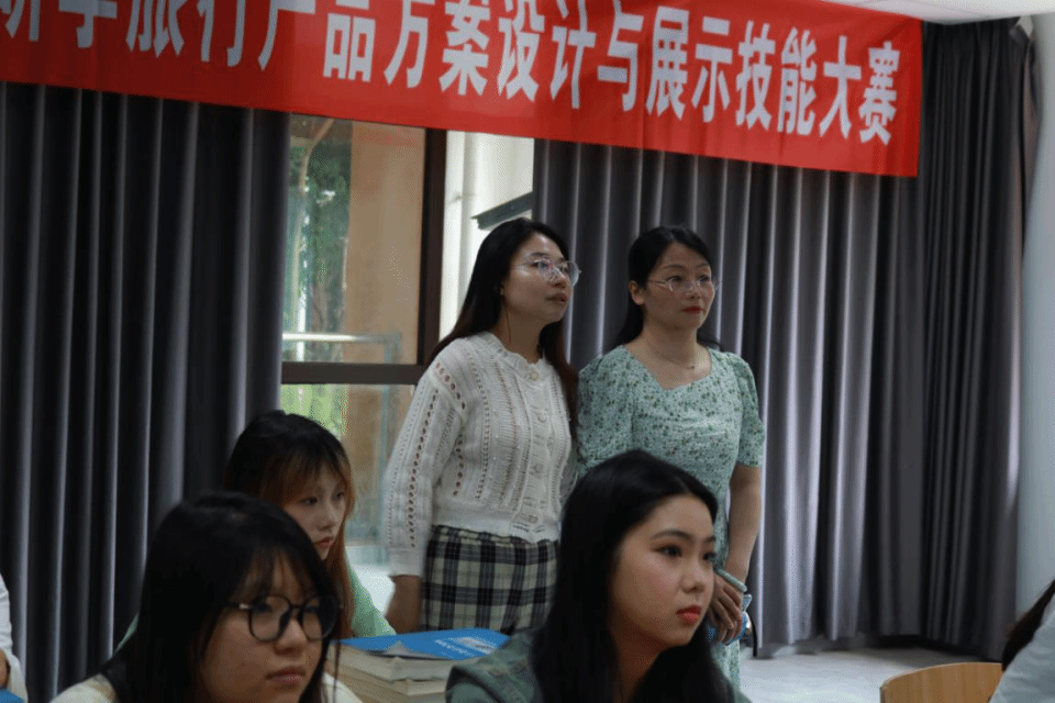 此次比赛不仅为学生们提供了一个展示才华的平台,也吸引了学院领导的关注。教育与文化传媒学院副院长王其红、办公室主任徐雪亲临现场观摩。作为 2025 年四川省高职院校学生技能大赛研学旅行产品方案设计与展示赛项的校内选拔重要环节,本次比赛的成功举办意义深远。它不仅发掘和储备了一批优秀的参赛人才,也推动了学校以赛促学、以赛促教的教学模式改革。在比赛中脱颖而出的团队和个人,将接受进一步的培训和打磨,代表学校参加省级赛事,有望在更高的平台上展现眉山职业技术学院学子的专业实力与创意风采。